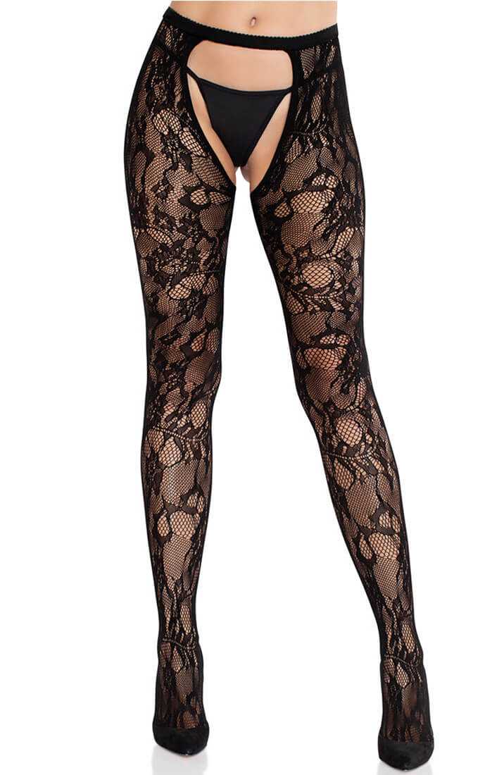 Some secrets are not meant to stay hidden. These sheer floral lace tights turn up the heat with a full crotchless and open-back design that leaves very little - and just enough - to the imagination.